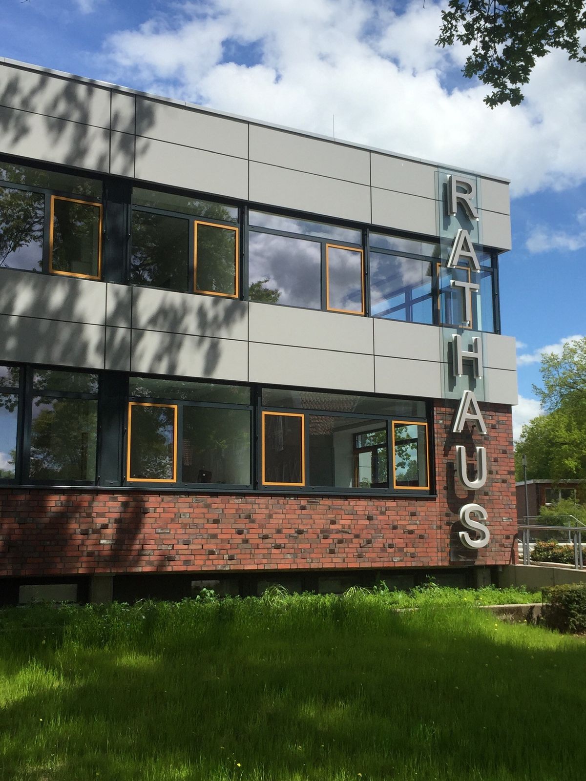 Die Außenfassade des Rathauses Scheeßel wurde in den Jahren 2019-2021 energetisch und damit auch optisch saniert. Wir haben dafür eine Vielzahl an Beiträgen geleistet: Außenfenster, Türen, Brandschutzfenster- und Türen und ein hochkomplexes Lichtdach. Das sanierte Rathaus spart nun Energie und zeigt einen modernen und einladenden Look.